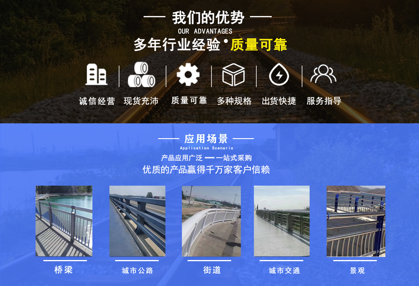 鋁合金護欄廠家是一家常年銷售不銹鋼復合管護欄,橋梁護欄,鋁合金護欄,橋梁燈光護欄,橋梁防撞護欄等各類護欄。  不銹鋼復合管產品系列具有外表美觀、防銹耐腐蝕性好、可彎曲、焊接、良好的機械、加工、安裝性能,廣泛應用于橋梁/河道護欄欄桿、市政建設、景觀護欄、城市護欄、道路護欄、人行扶手、路燈燈桿、高架路橋、立交橋、高速公路護欄欄桿、廣告牌架、車輛構建、紡織機械、體育器材、醫療設備等。內襯不銹鋼復合管產品系列具有防銹耐腐蝕性好、耐熱耐寒、冷熱兩用、結合強度高、通徑大、阻力小、經久耐用,可彎曲、焊接、絲口、法蘭、溝槽連接、良好的機械、加工、安裝性能,廣泛應用于冷熱水輸送、給排水系統中的冷熱水管道;住宅和商業樓宇給排水系統的冷熱水管道,中央空調、消防系統和供暖系統管道,石油、化工、食品等液體輸送管道;工業造紙和農業排灌中的給排水管道,天然氣,煤氣等輸送管道、醫療食品等要求衛生、耐熱、耐腐蝕行業首選的新型管道材料。不銹鋼復合管、內襯不銹鋼復合管產品系列而且價格低廉、是純不銹鋼管、不銹鋼結構裝飾管、銅管或其它耐腐蝕合金管、鍍鋅鋼管、塑料管的升級換代的產品。  公司以科學的管理、精確的檢測滿足廣大客戶的需求,在本行業中擁有良好的聲譽,并贏得了客戶的廣泛好評。現代企業的管理方法,立足于產品的質量管理。以其優異...